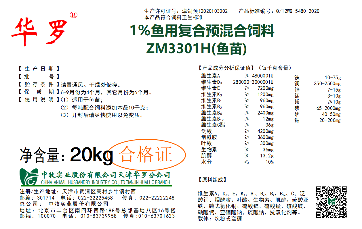 ZM3301H(魚苗)魚用預(yù)混料